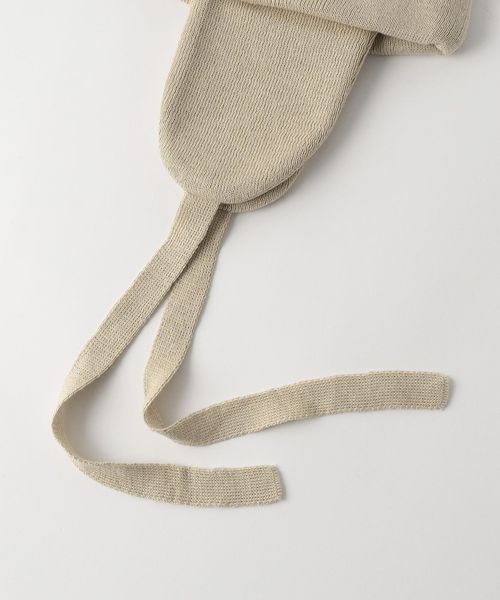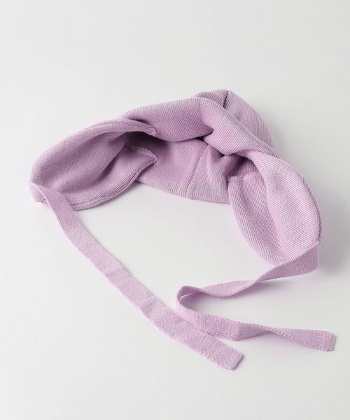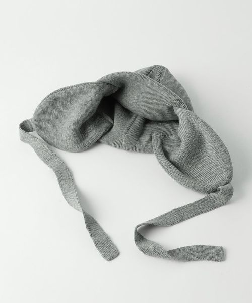 耳あては垂らしたままにしたり、頭の上で紐を結べる2WAY仕様です。