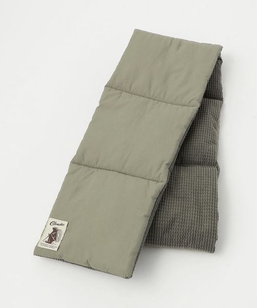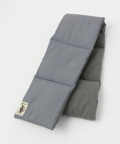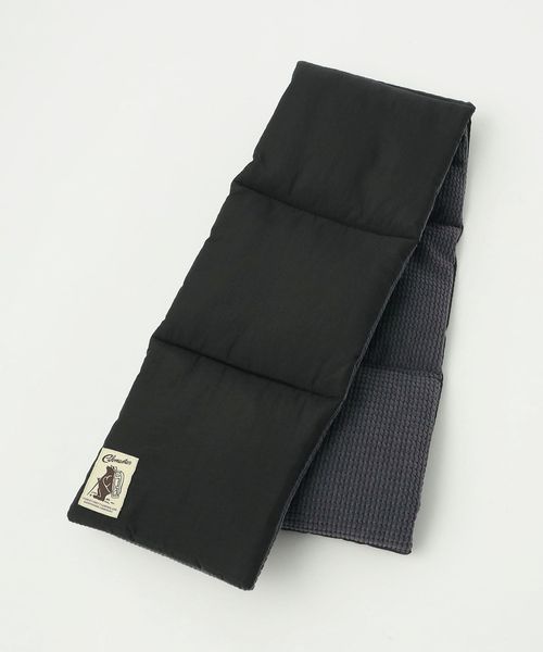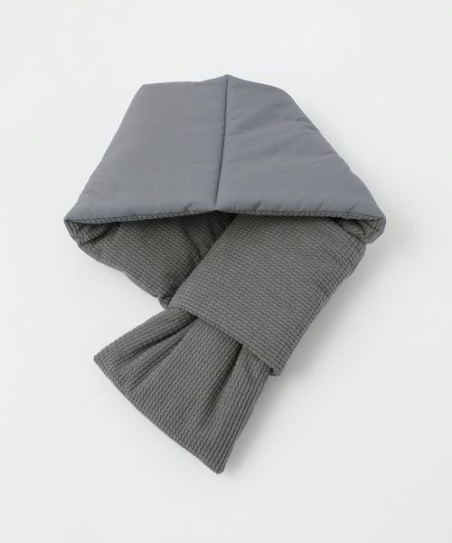 ナイロンと格子状のフリースの素材をダブルフェイスにした中綿マフラー。