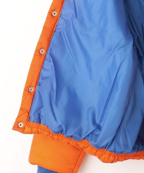 シンプルなデザインと配色が目をひく中わたのブルゾン。