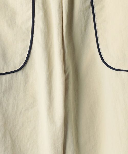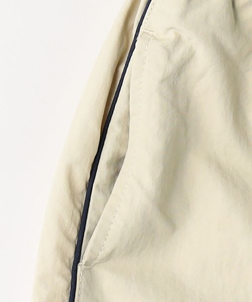 配色パイピングのラインがサイドとフロントでアクセントになったパンツ。