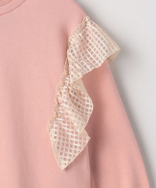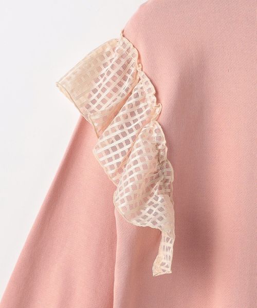 肩に施したチェックチュールフリルと、ふっくらした袖で、フェミニンなイメージに仕上げました。