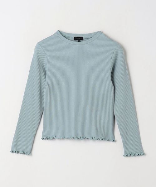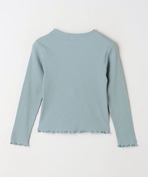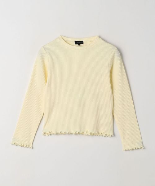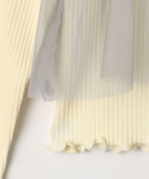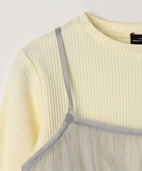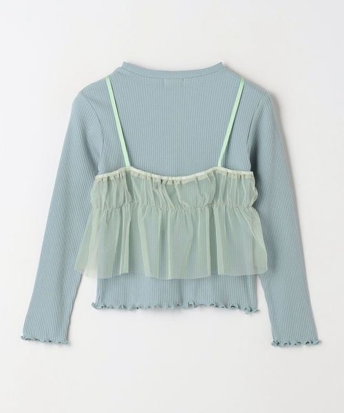 裾や袖先のメロウがポイントになった、シンプルな長袖カットソーと、チュールのキャミソールのセット。