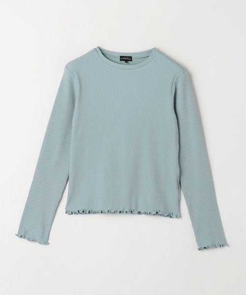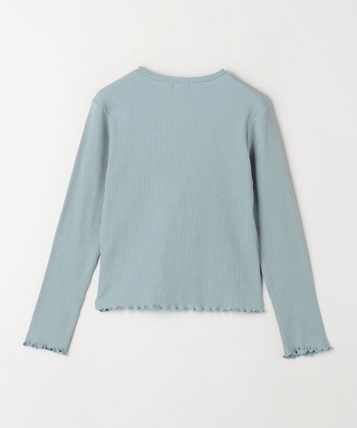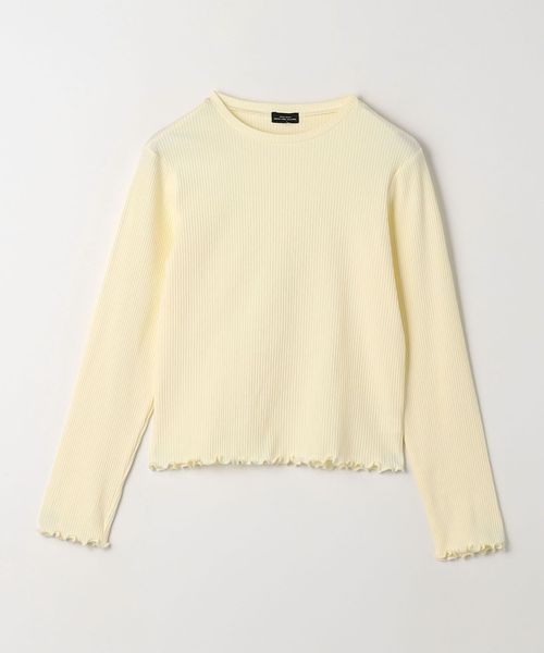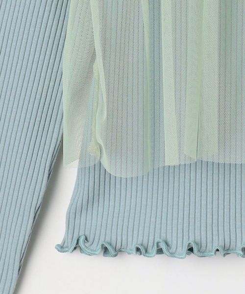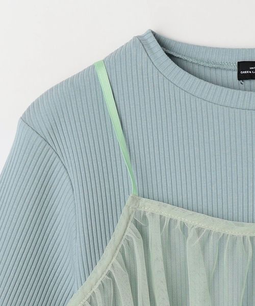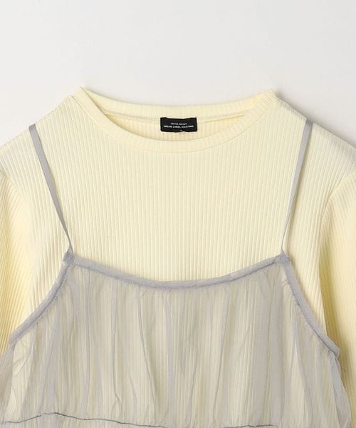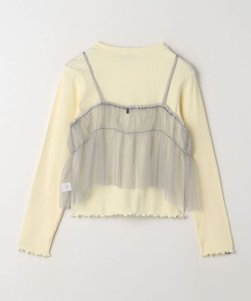 裾や袖先のメロウがポイントになった、シンプルな長袖カットソーと、チュールのキャミソールのセット。