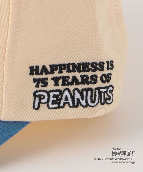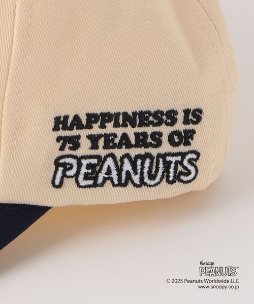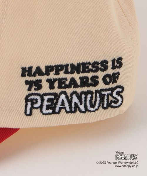 帽子のサイドには75周年のテーマでもある「HAPPINESS IS 75 YEARS OF PEANUTS」を刺繍しています。