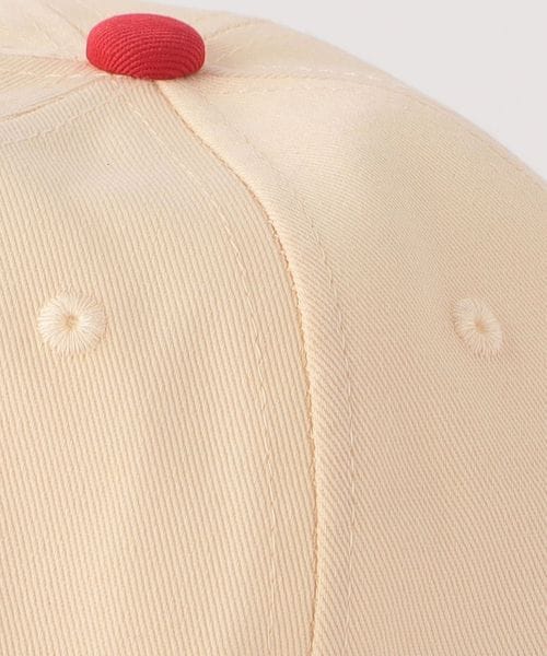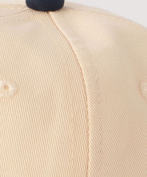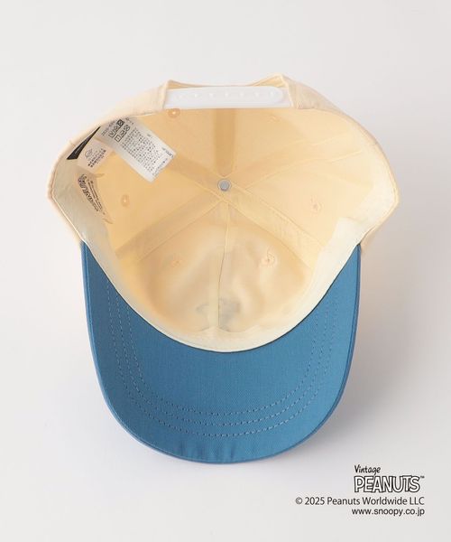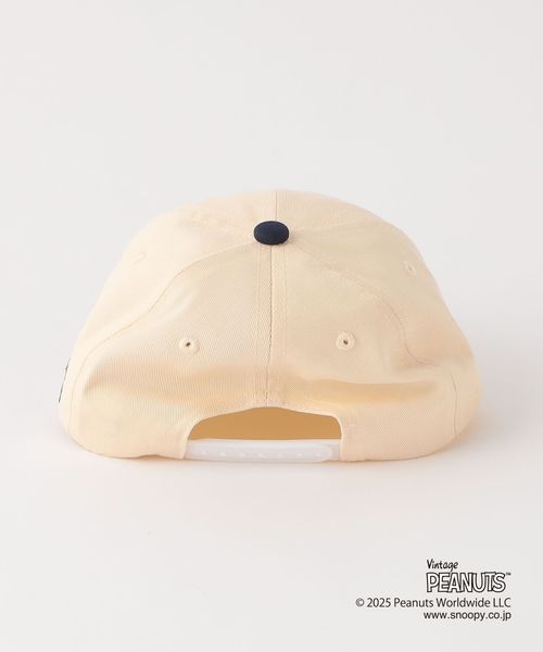 つばにカラーを効かせたバイカラーに、PEANUTSの刺繍をデザインしました。