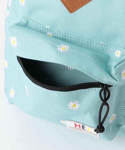 ライトブルーをベースに、デイジーの刺しゅうを施したデイパック。
