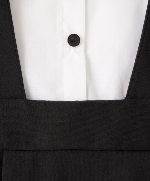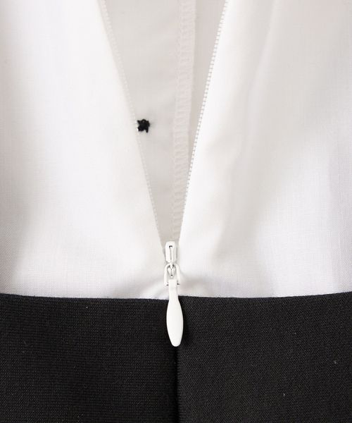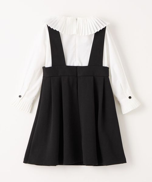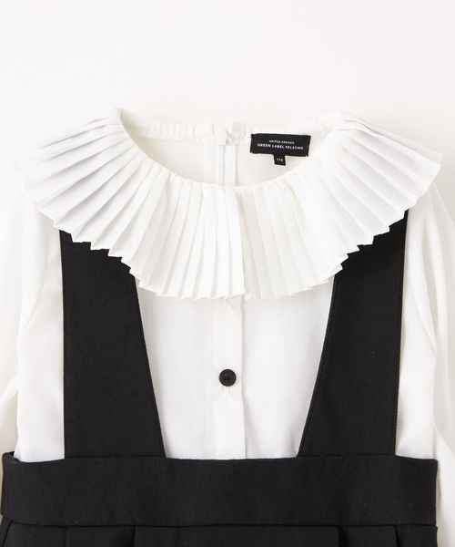 印象的なプリーツカラーのブラウスとジャンスカがドッキングしたワンピース