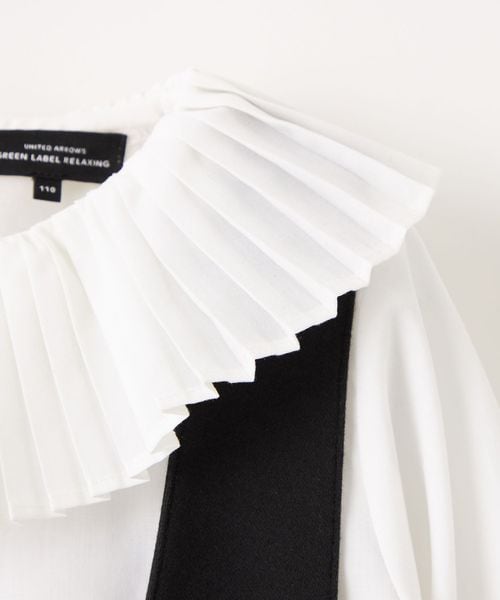 顔周りを華やかに演出してくれるプリーツ襟がポイントの一枚。