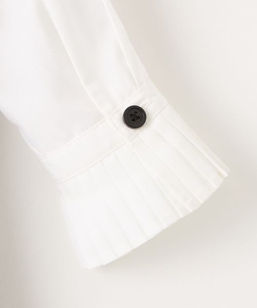 袖口部分にもプリーツを施し、配色のボタンがアクセントに。