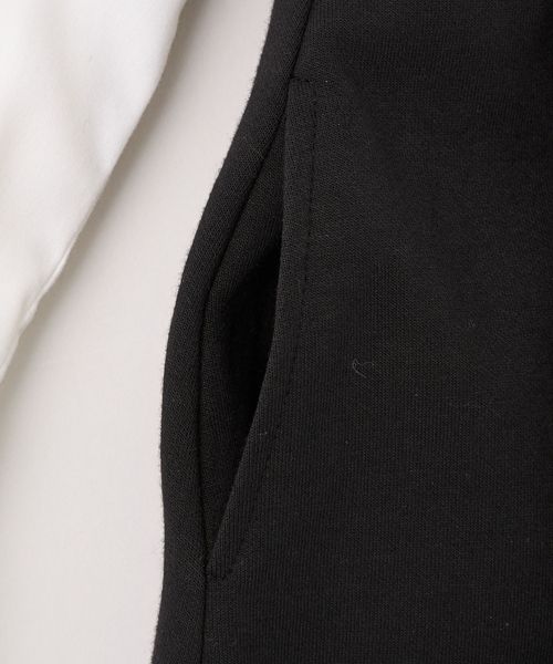 ハイウエストのジャンスカをレイヤードしているようなドッキングデザインで、一枚でさまになるアイテムです。