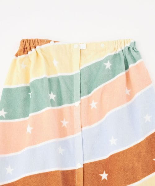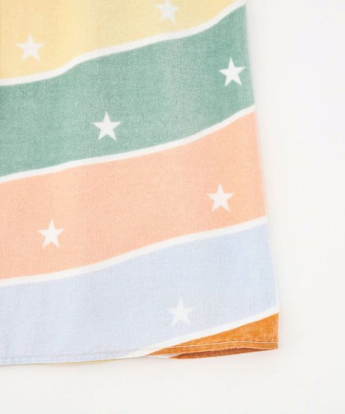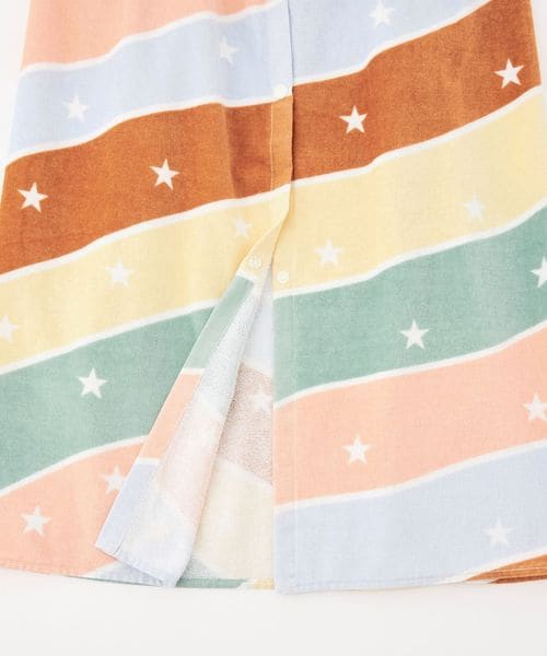 ユニークな波ボーダーにスターをちりばめたミックスパターンが目をひくデザイン。