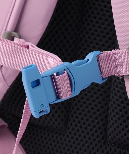 肩にフィットするショルダーハーネスには、一定の荷重で自動開放する安全性を考慮したホイッスル付きチェストストラップを採用しています。