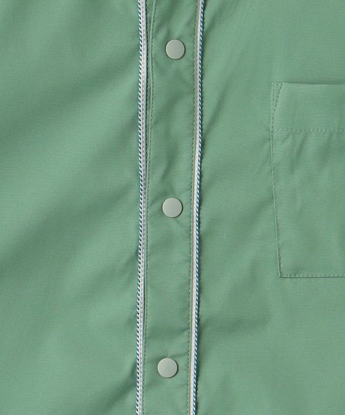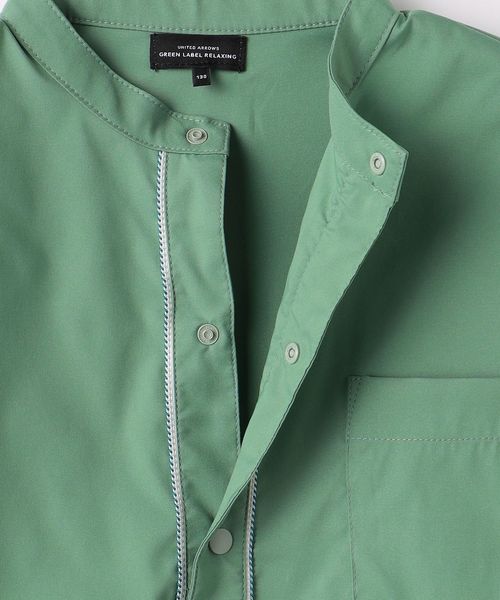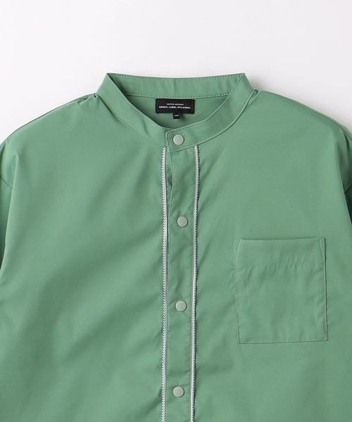 無地ベースに配色のパイピングがさりげなく目をひくバンドカラーシャツ。