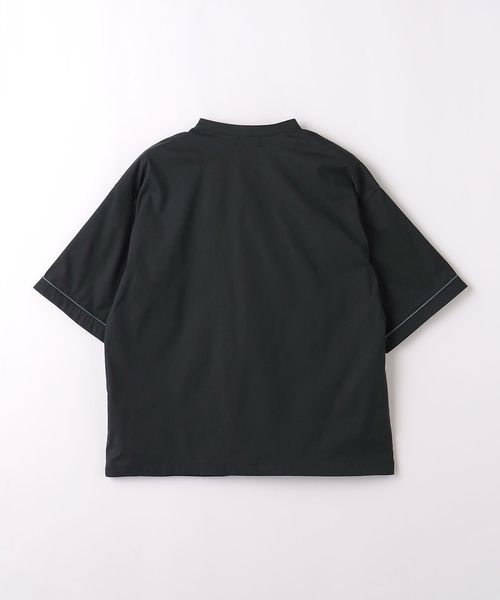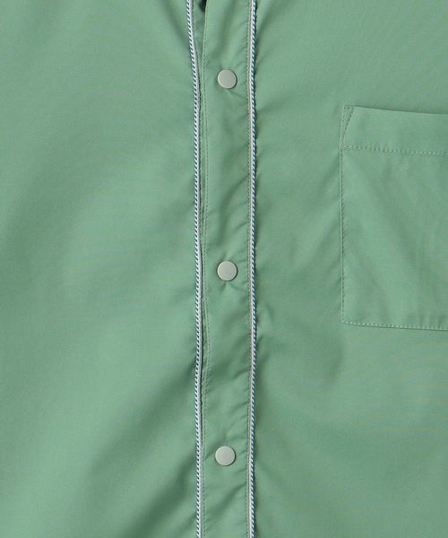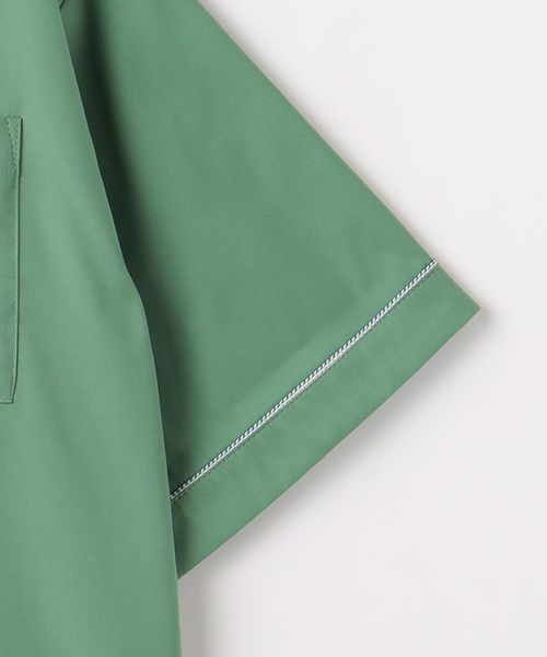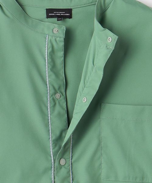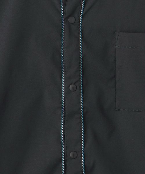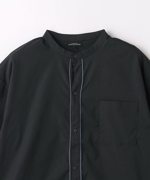 無地ベースに配色のパイピングがさりげなく目をひくバンドカラーシャツ。