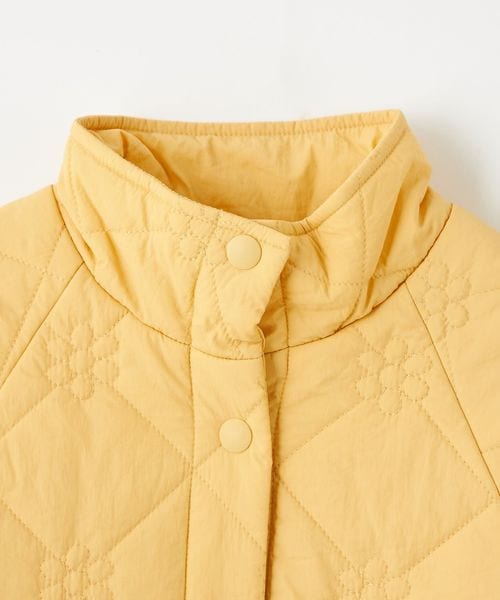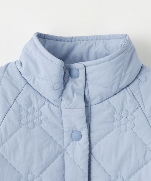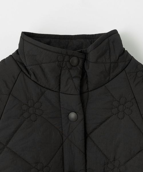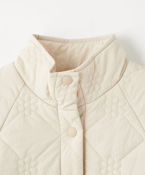 フラワーモチーフ×ダイヤキルトが特徴的な中わたブルゾン。軽やかでさっと羽織れる素材で秋から活躍してくれます。