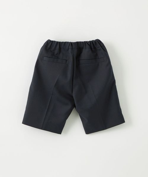 セレモニースタイルの定番、センタープレスのひざ上丈ショートパンツ。