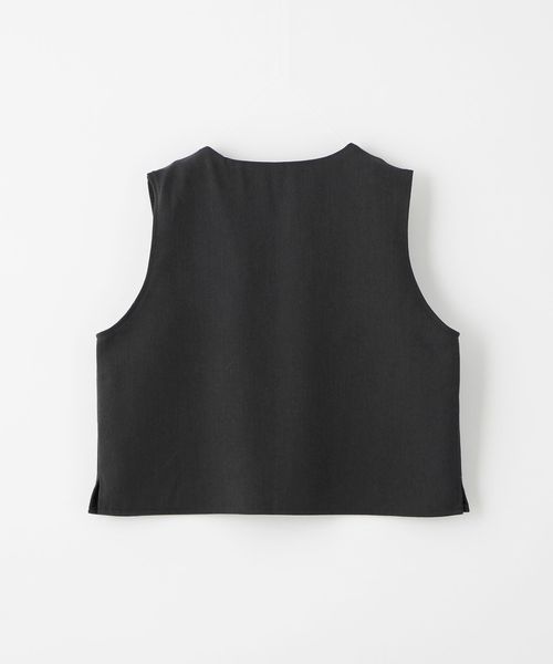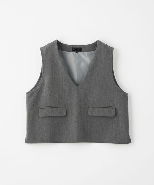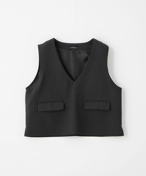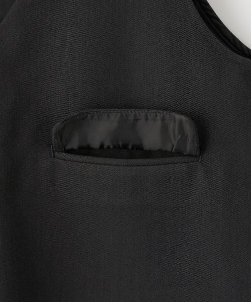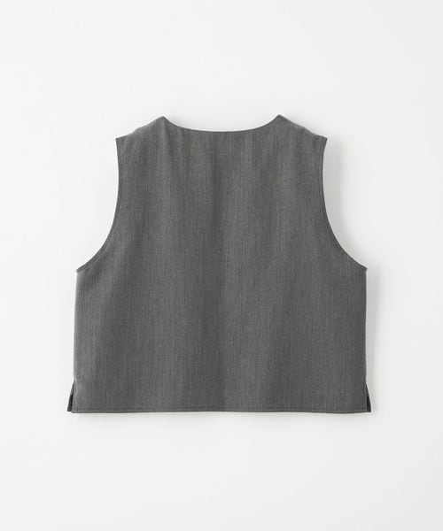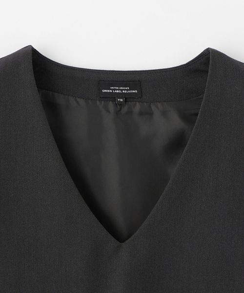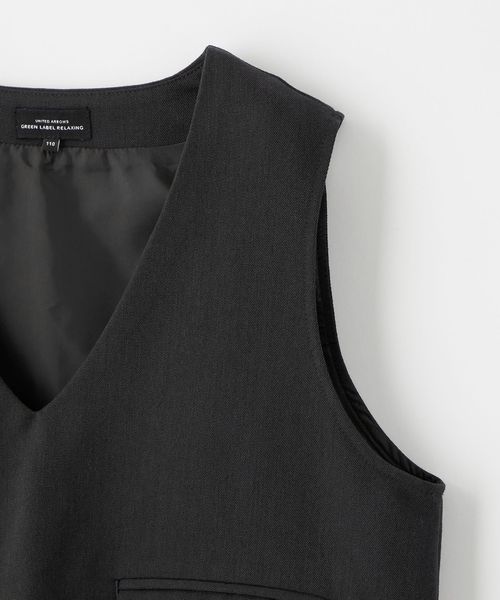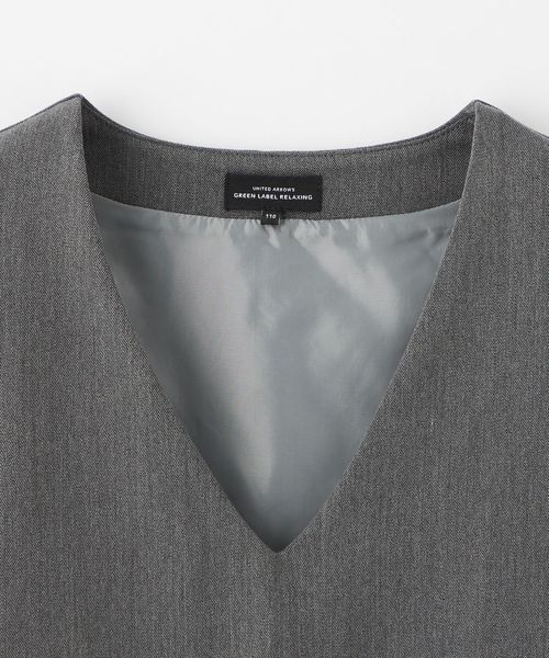 深めのVネックがすっきり着られるベストは合わせるインナーによって違った雰囲気を楽しめます。