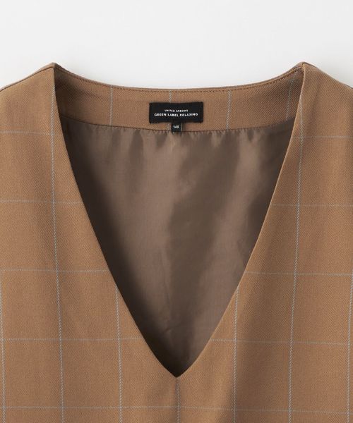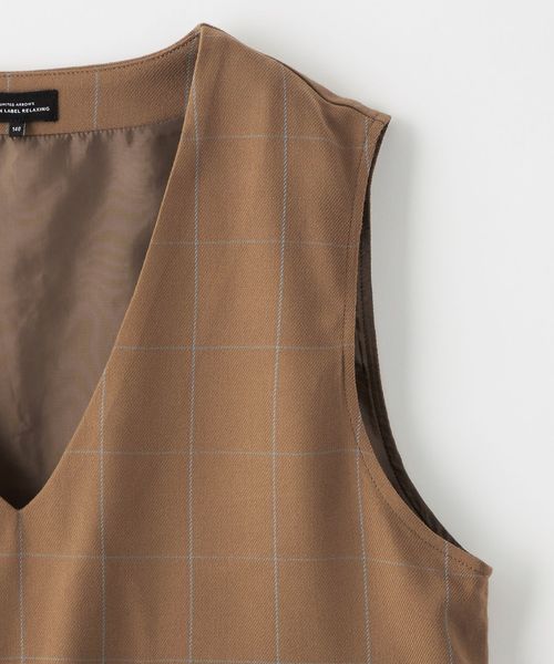 深めのVネックがすっきり着られるベストは合わせるインナーによって違った雰囲気を楽しめます。