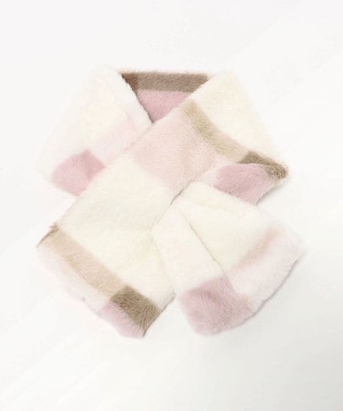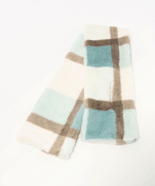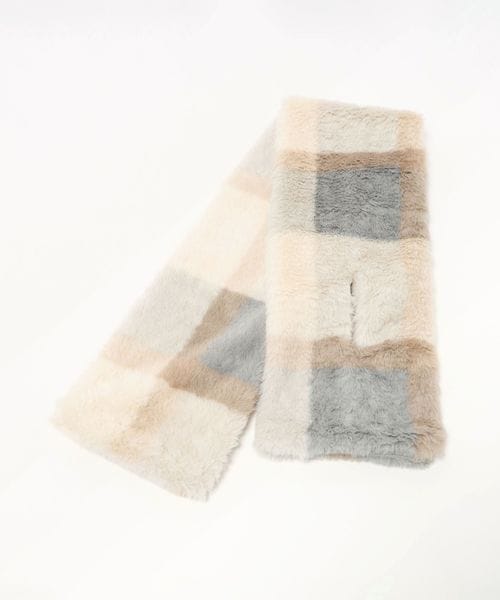 淡いカラーのチェック柄と柔らかいフェイクファーの組み合わせ。