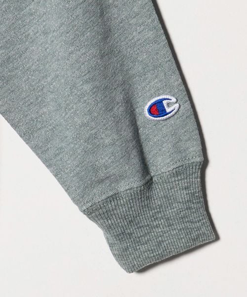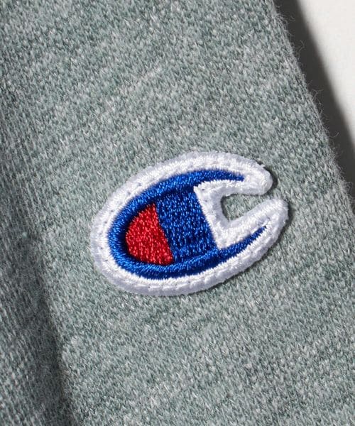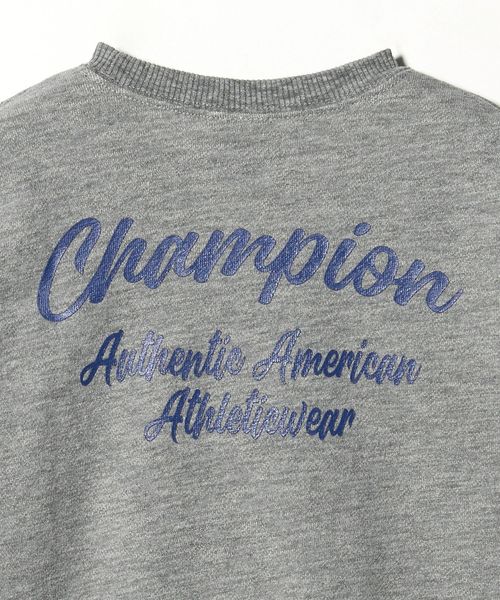 胸には筆記体でデザインした「Champion」をチェーン刺繍で、背中にも同じフォントを用いたグラフィックをラバープリントで入れています。