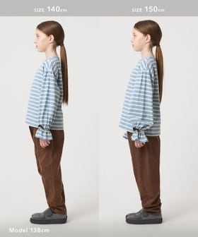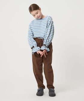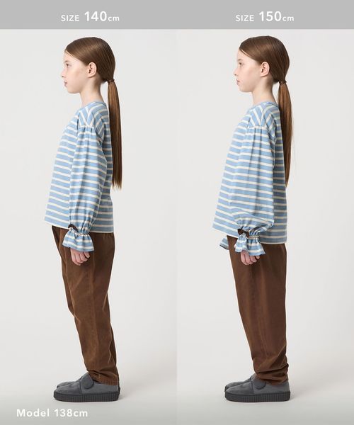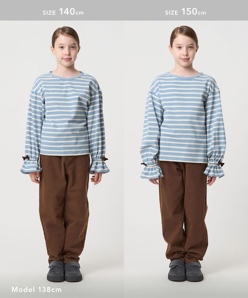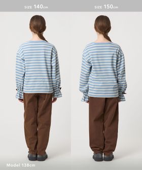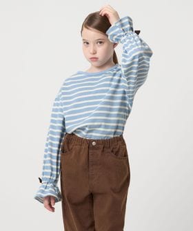 ふっくらとした袖のデザインと、袖口についたリボンがかわいいボーダーTシャツ。