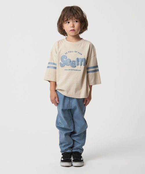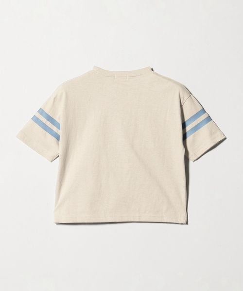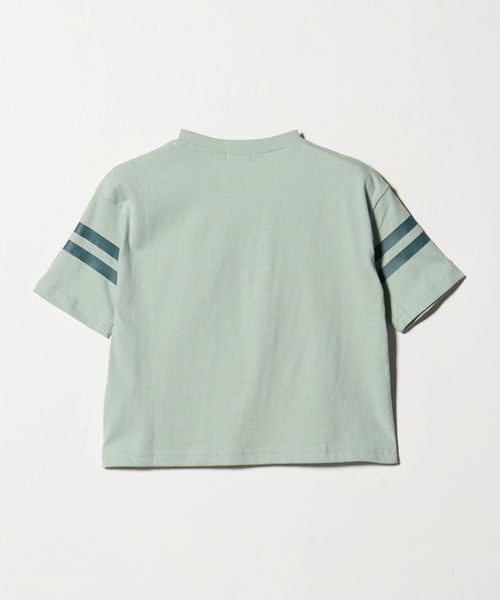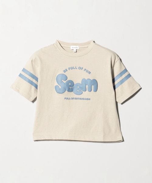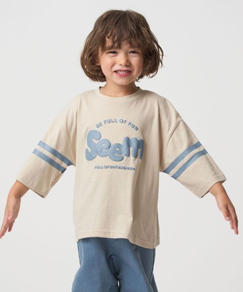 袖ラインと立体感のある発泡ロゴプリントがポイントの5分袖Tシャツ。
