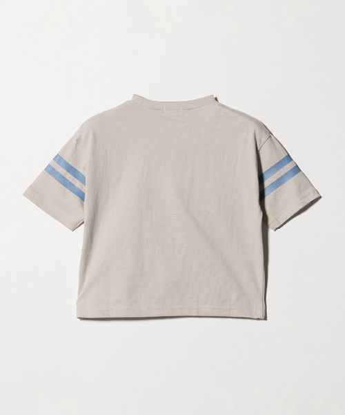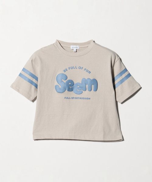 袖ラインと立体感のある発泡ロゴプリントがポイントの5分袖Tシャツ。