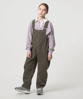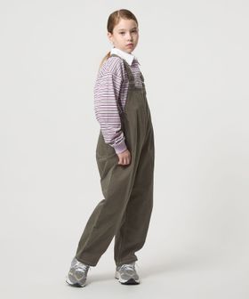 サロペットからインナーのフロントデザインをちらりと見せるのが可愛く、ロゴデザインのトップス等とあわせるのがおすすめです。