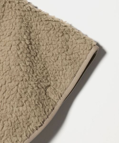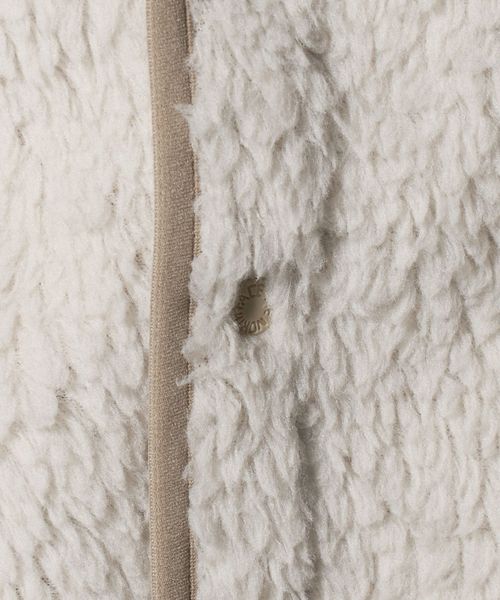 表面にはかさ高がある毛足の長いボアフリース、肌面には滑らかな肌触りのマイクロフリースをボンディングした生地を採用しています。