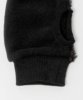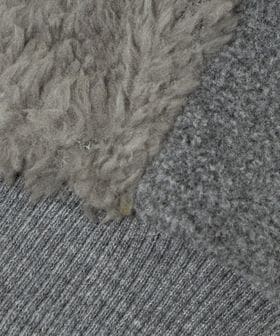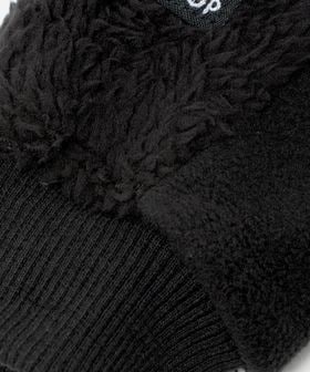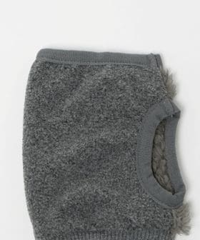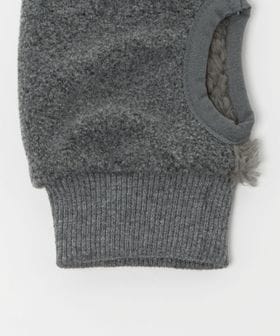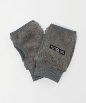右左のフリースとシャギーボアが前後反転したデザインの指無しグローブ。