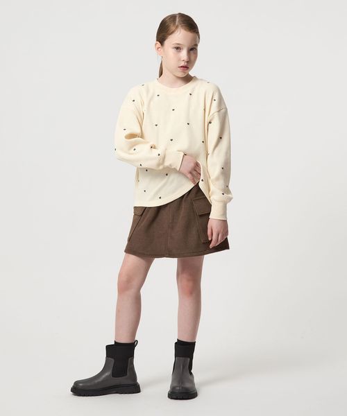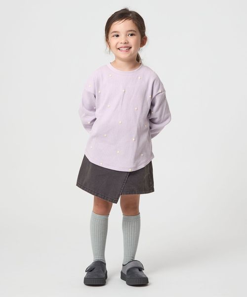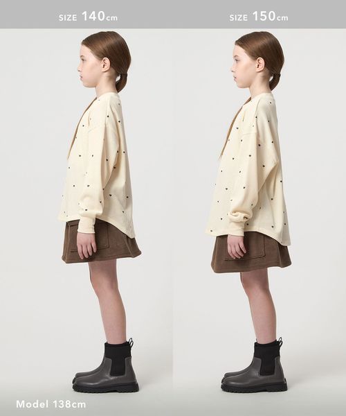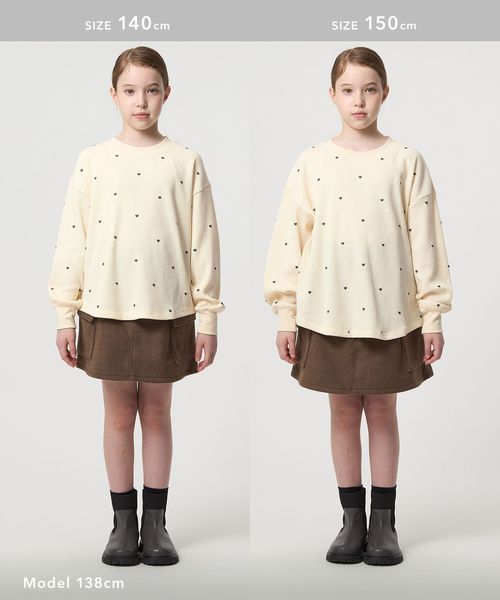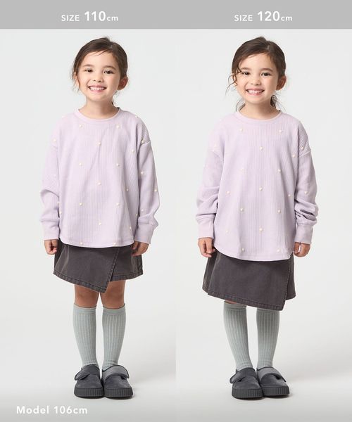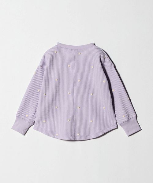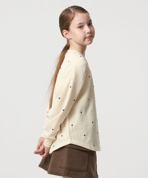 ハート総柄 ワッフル ロングスリーブTシャツ / キッズ 100cmー160cm