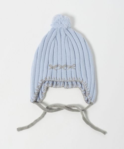 甘すぎないボディカラーに、さりげないリボン刺しゅうがキュートなニット帽。