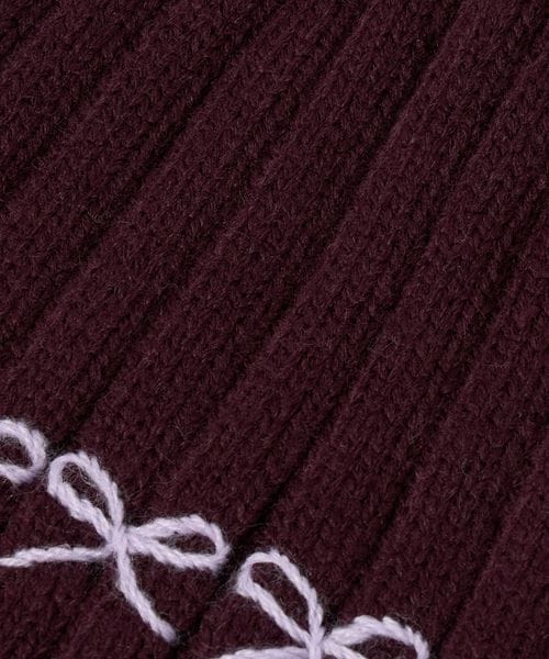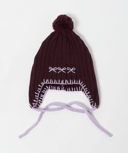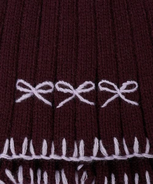 甘すぎないボディカラーに、さりげないリボン刺しゅうがキュートなニット帽。