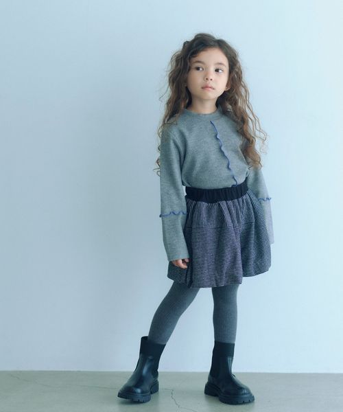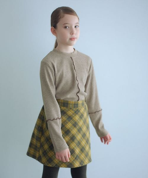 配色メロー起毛 テレコトップス / キッズ 100cm―160cm