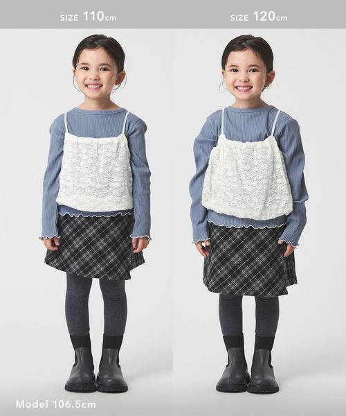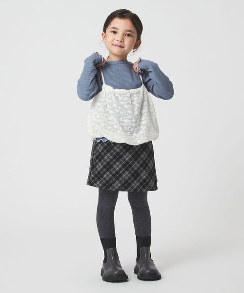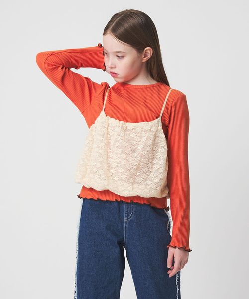 起毛レースキャミ×テレコロング Tシャツ セット / キッズ