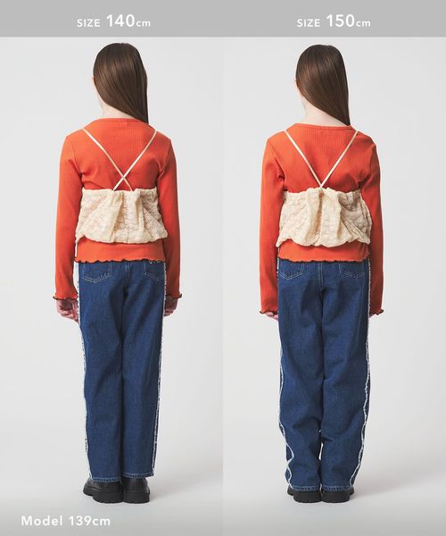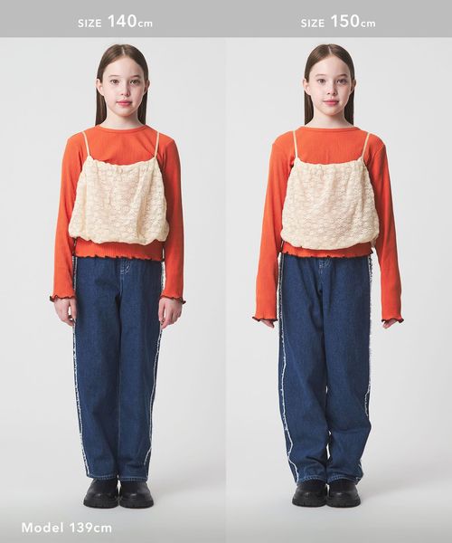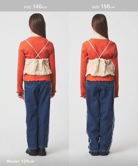 | 140cm | Tシャツ:50 キャミソール(前身頃):27.5 | 36 | Tシャツ:37 キャミソール(前身頃):41 | 48.5 |