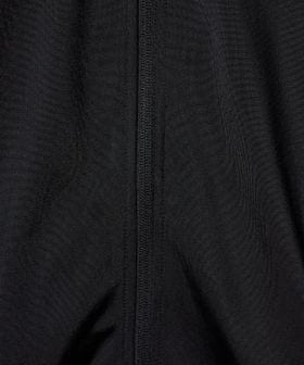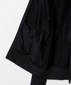 フルジップジャケットとミッドライズパンツの素材には、軽めで柔らかい、滑らかなファブリックを使用。