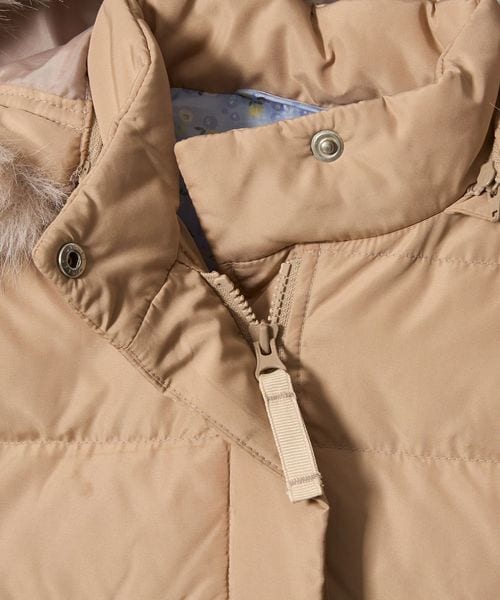 フードは取り外し可能なので通園通学にもぴったり。フードを取り外してもスタンドネックになっているので首元まであたたかく着ていただけます。
