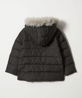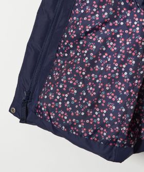 さりげなくのぞく花柄の裏地、フードにはフワフワのフェイクファーをあしらった、女の子らしさをぎゅっと詰め込んだ一枚。