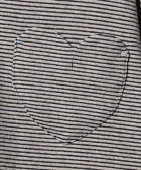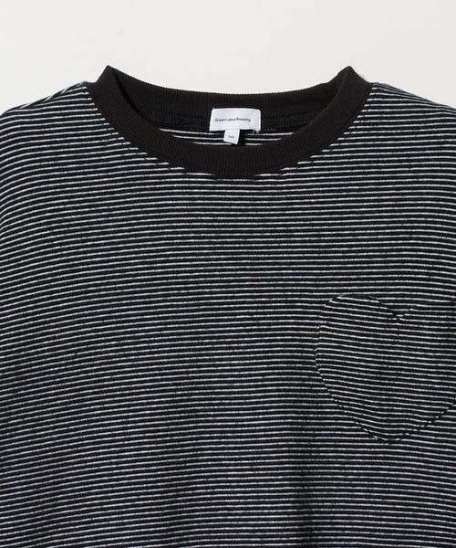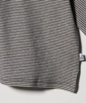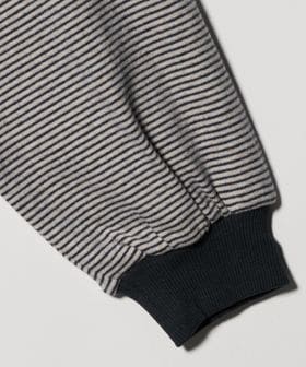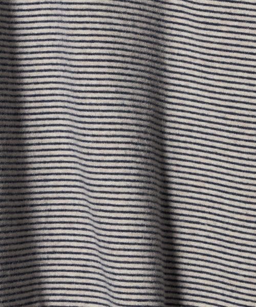 シックな細ボーダーとリンガーデザインを合わせることでモードなエッセンスをプラス。