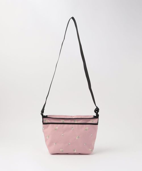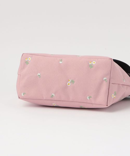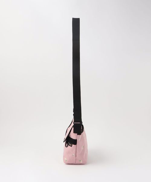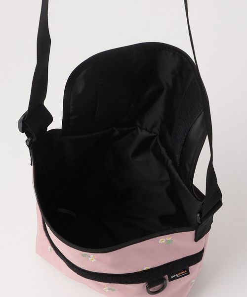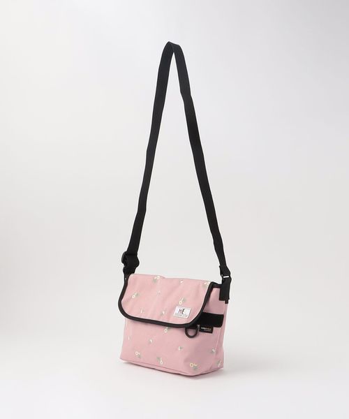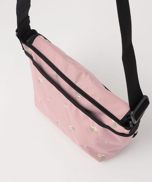 フラワー刺しゅうを施したメッセンジャーバッグ。