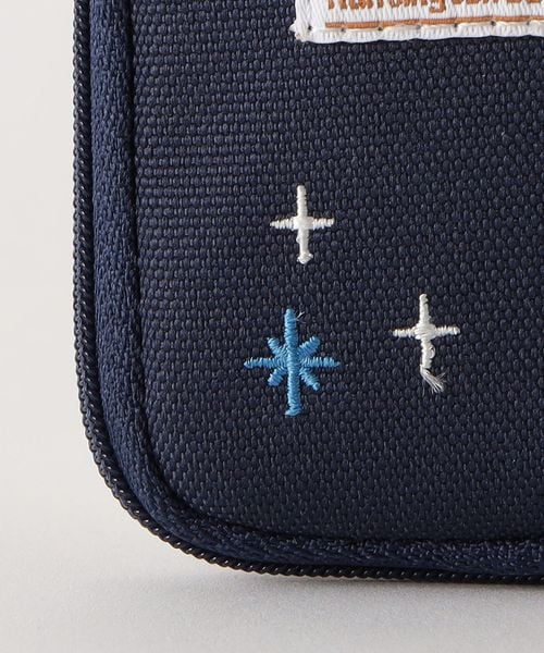 ネイビーをベースに、ユニバース刺しゅうを施したキーポーチ。