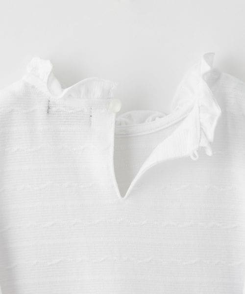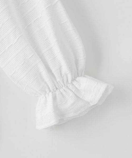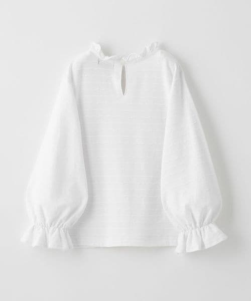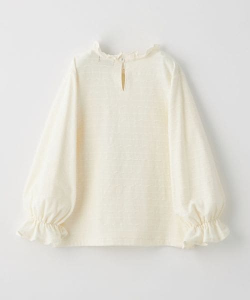 コーディネートしやすいさりげない柄に、襟と袖のフリルが華やかさをプラスしてくれます。