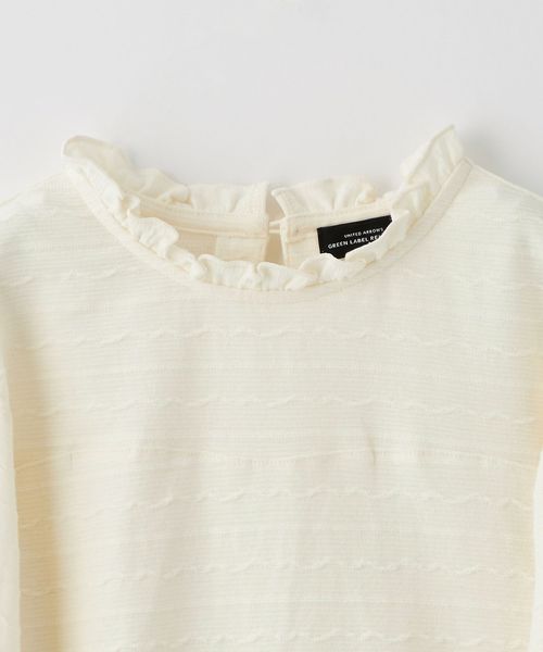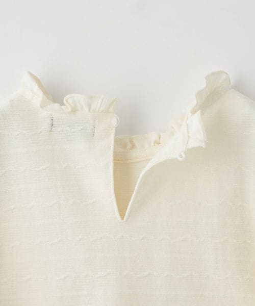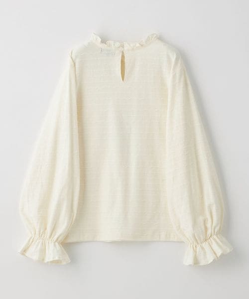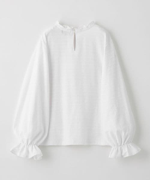 コーディネートしやすいさりげない柄に、襟と袖のフリルが華やかさをプラスしてくれます。