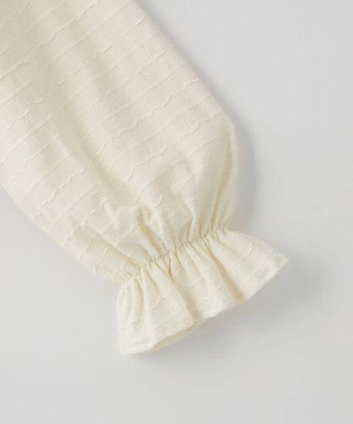 袖口にギャザーのよったふくらみのある袖のシルエット、襟うしろの開きがポイントになる後ろ姿もかわいいデザインです。