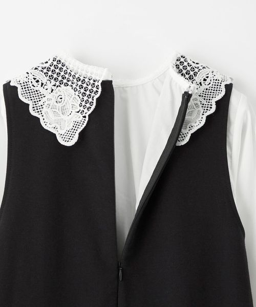 身頃はポンチ生地、インナー部分は布帛生地で切り替えたコンビワンピース。