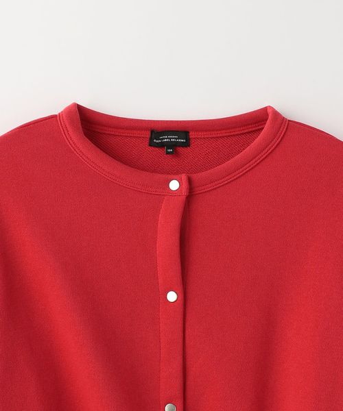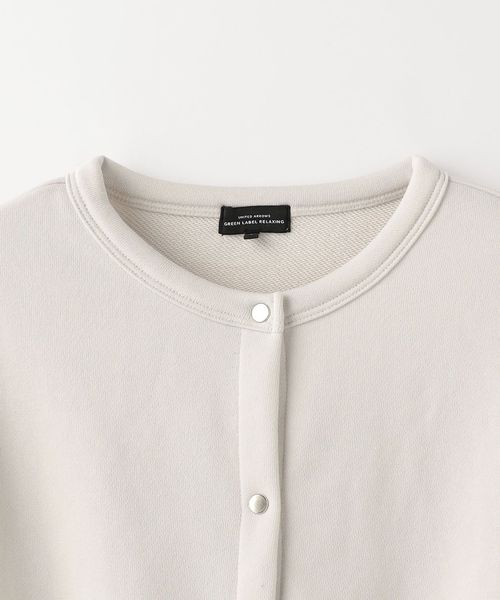 たっぷりとした袖のボリューム感が可愛らしい、スウェット素材のカーディガン。