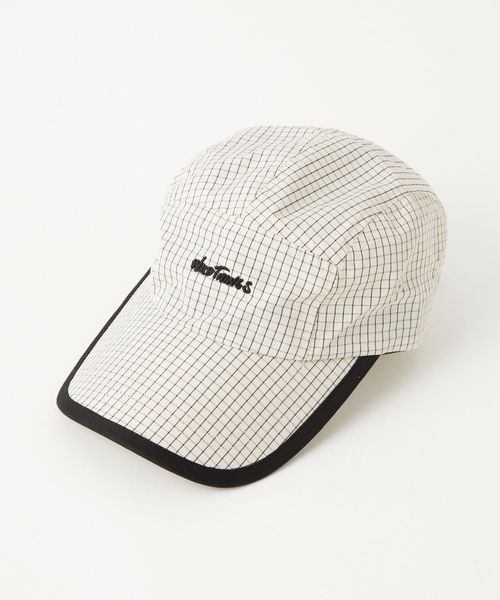 サッカー調の素材で格子柄がポイントのジェットキャップ。