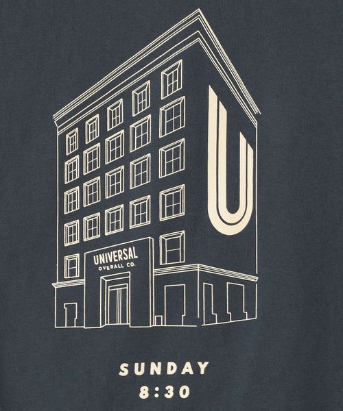 グラフィックはUNIVERSAL OVERALLの古い本社屋をイラスト化したもの。