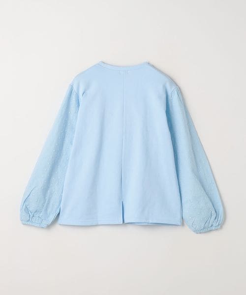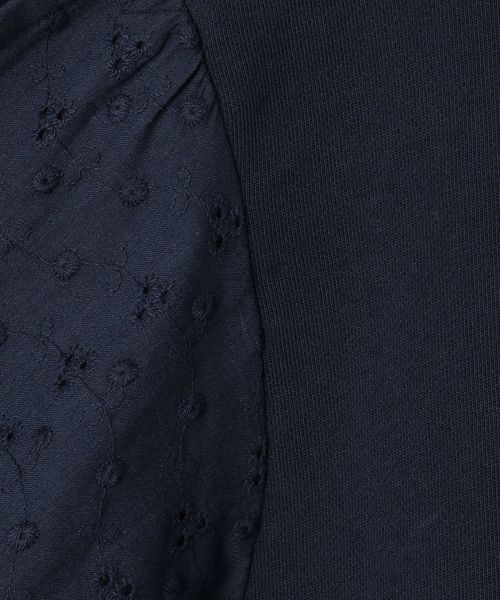 裏毛素材をメインに、袖は花柄刺繍の布帛素材で切り替えたプルオーバー。